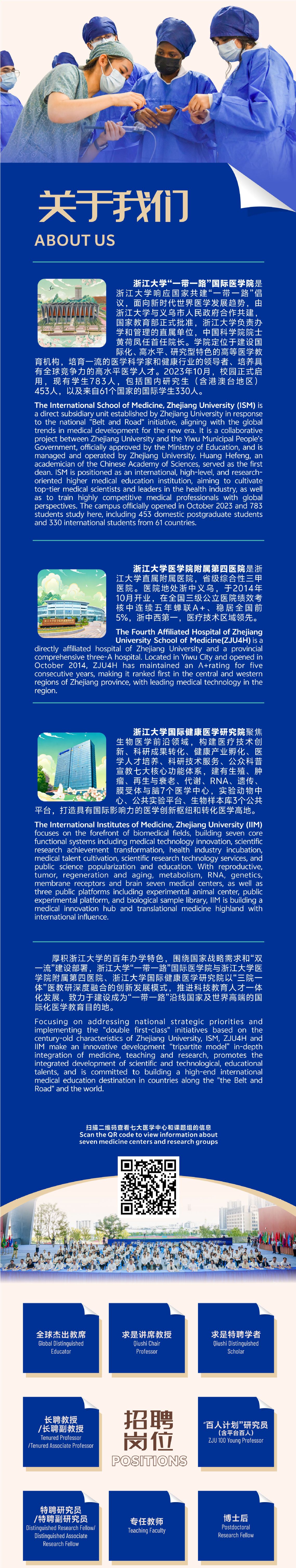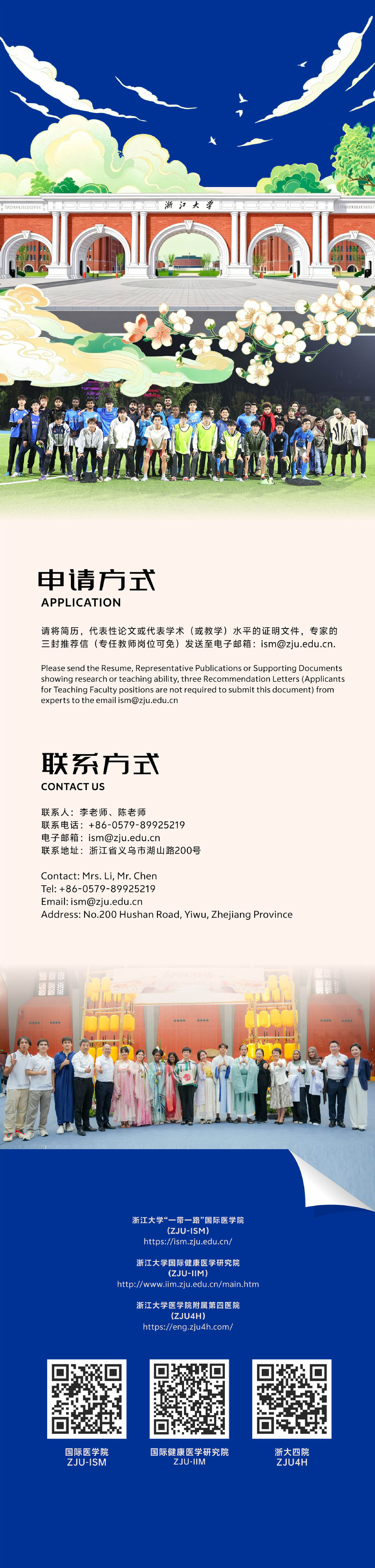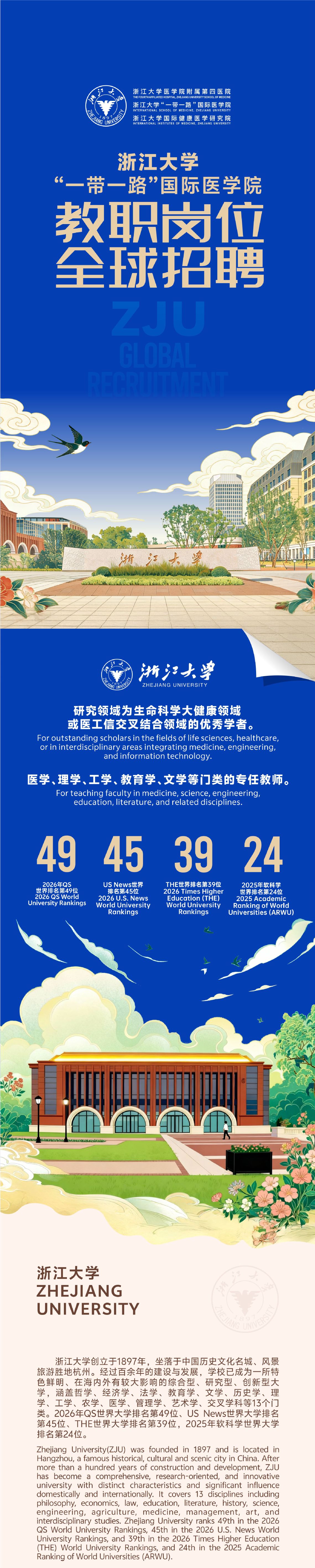 浙江大学”一带一路“国际医学院全球招聘教职岗位