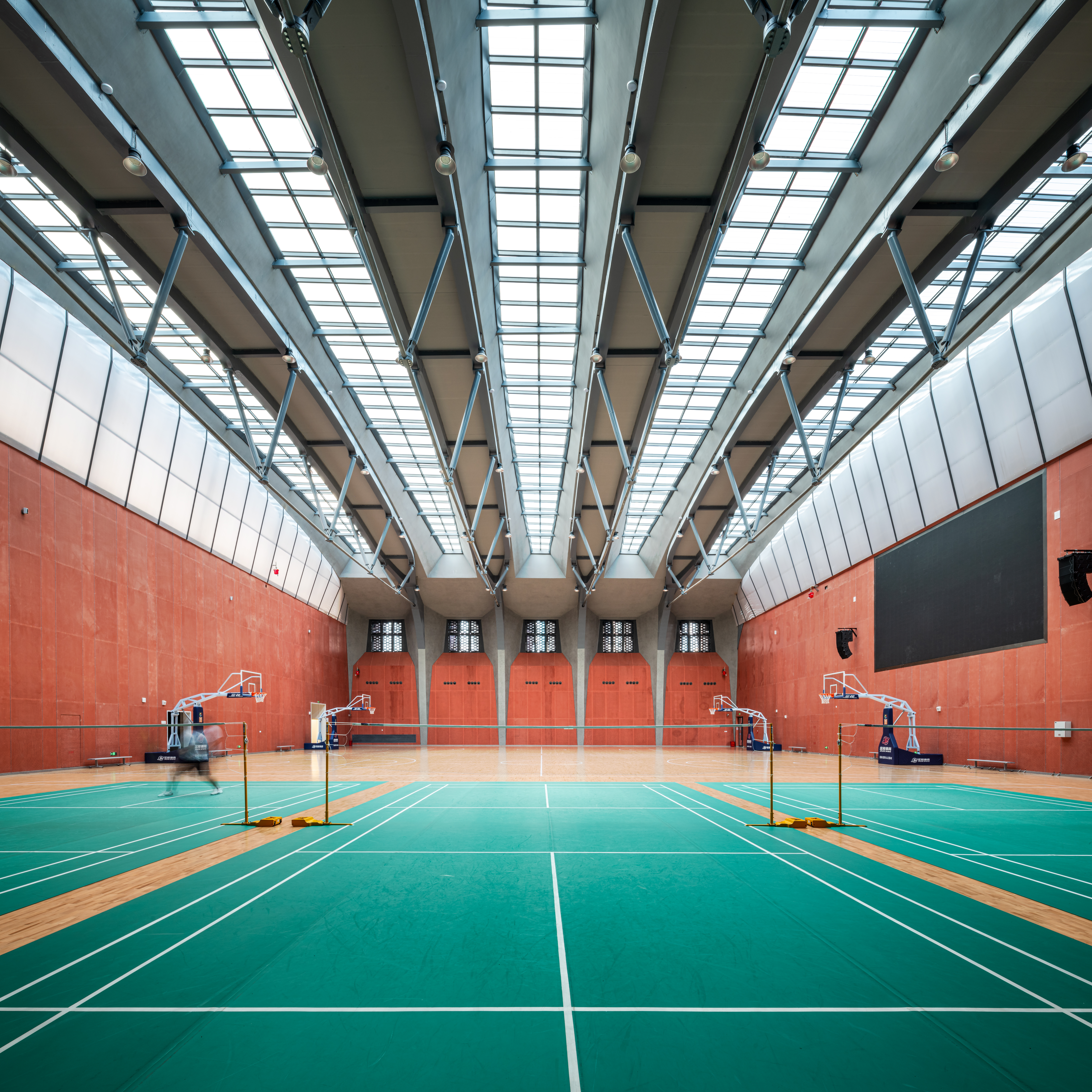 体育中心位于校区中心区,总建筑面积为9300平方米,馆内包含篮球馆、网球馆、壁球室、健身房、武术房、瑜伽房、乒乓球室等场所,体育中心地下一层还配备50米室内恒温游泳池。室外运动场地包括400米田径场、足球场、篮球场等,可满足师生对各类体育运动的需求。