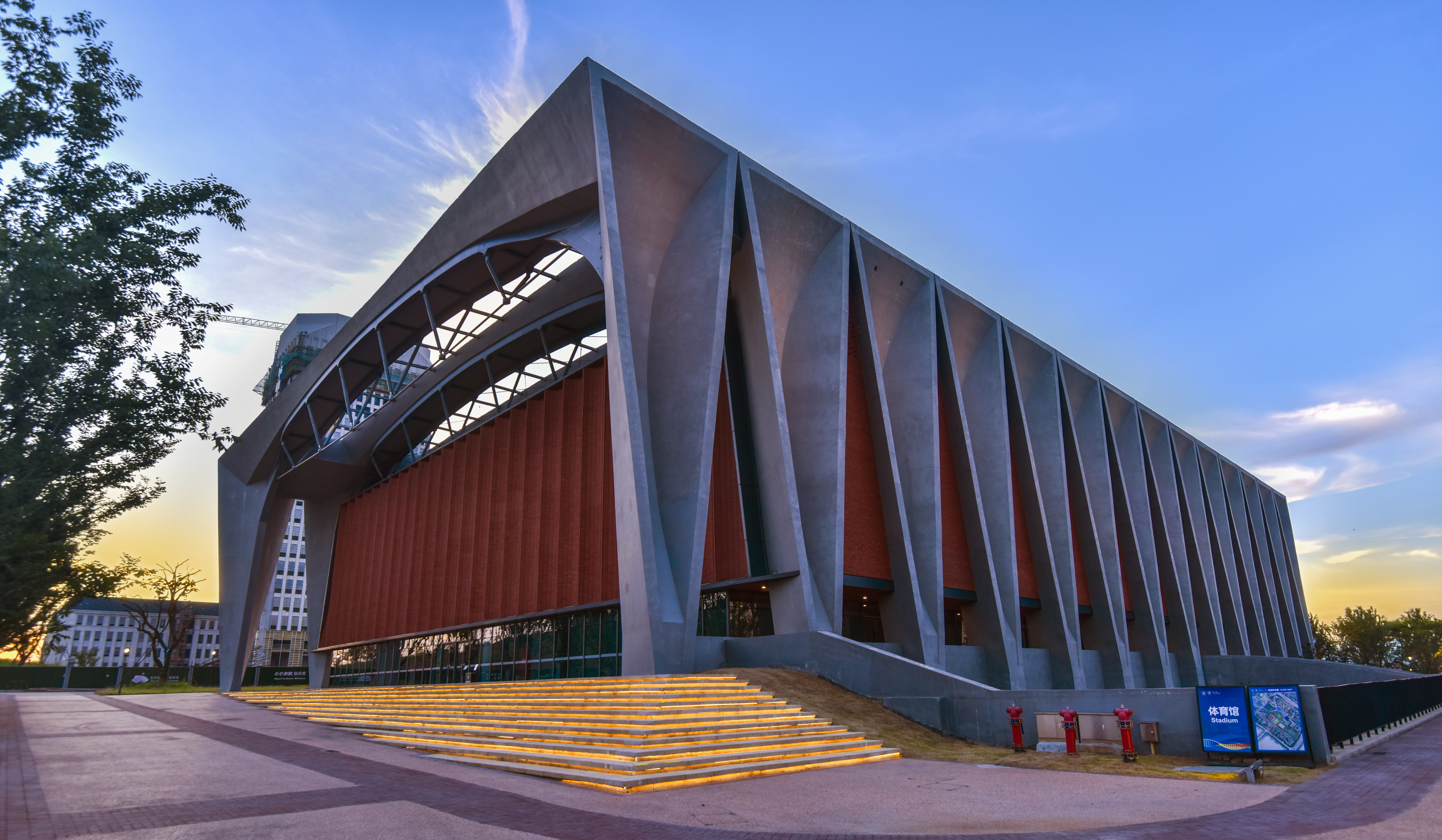属于教学组团,设有阅览空间、轻餐饮、展厅和露天剧场。